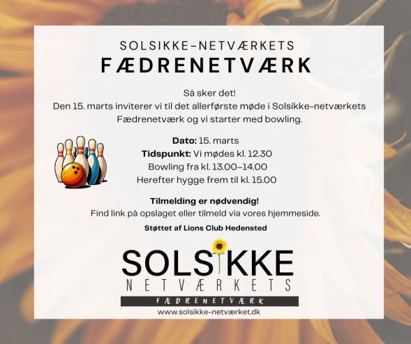 Den 15. marts inviterer vi til det allerførste møde i Solsikke-netværkets Fædrenetværk og vi starter med bowling.